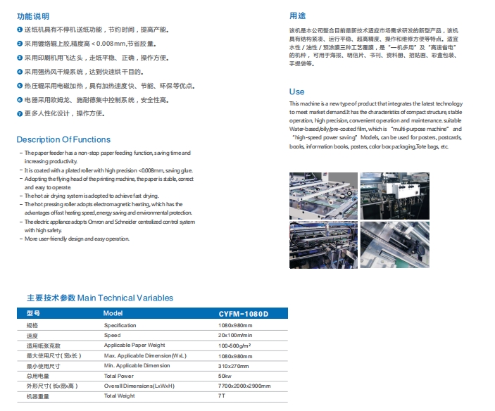 首頁 >> CYFM-1080D 全自動立式熱刀覆膜機(水性/油性膠水及預涂膠膜)